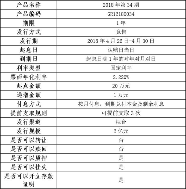 我行定于2018年4月26日發(fā)行個人大額存單2018年第34期產(chǎn)品,產(chǎn)品具體信息如下: